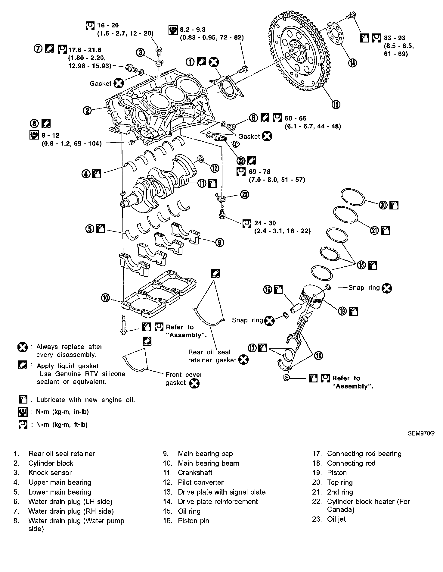 Nominal cylinder block height from crankshaft center: 214.95 - 215.05 mm (8.4626 - 8.4665 inch)