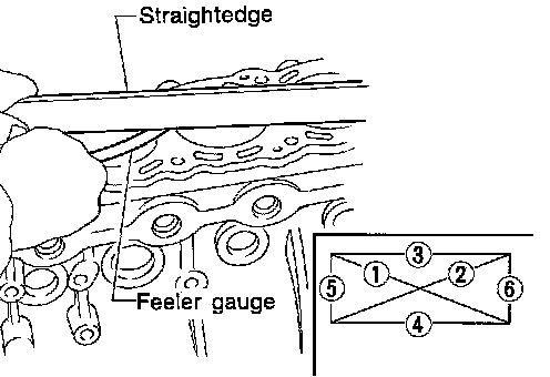 Use a reliable straightedge and feeler gauge to check the flatness of cylinder block surface.