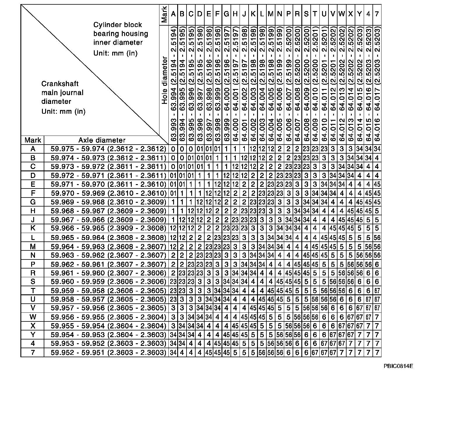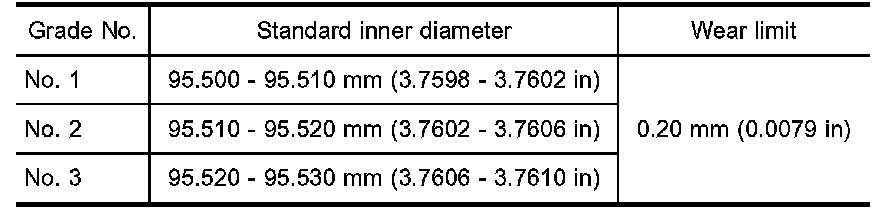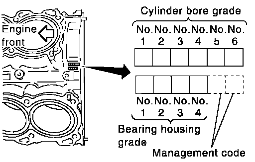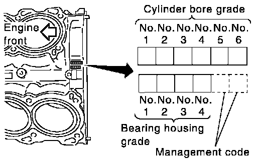 a. Grade number of each cylinder block main journal is punched on the respective cylinder block. These numbers are punched in either Arabic or Alphabet. If measured diameter is out of grade punched, decide suitable grade using table.