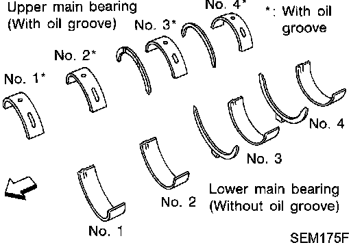 ^ When bearing clearance exceeds the specified limit, ensure that the proper bearing has been installed. If incorrect bearing clearance exists, use a thicker or undersized main bearing to ensure specified clearance.