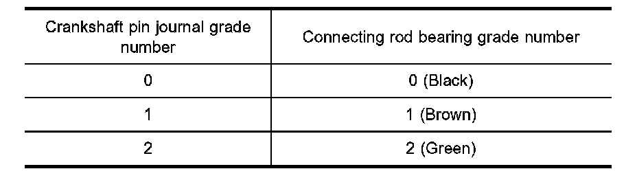 8. If crankshaft is replaced with a new one, select connecting rod bearing according to the table shown.