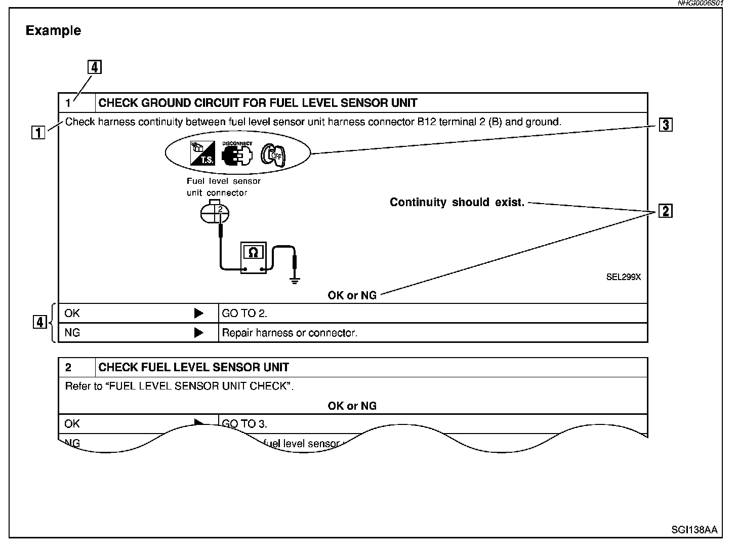 If you need to check circuit continuity between harness connectors in more detail, such as when a sub-harness is used, refer to Wiring Diagram in each individual section and Harness Layout. Refer to Harness Connector.