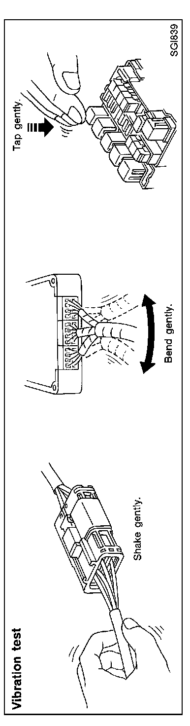 Determine which connectors and wiring harness would affect the electrical system you are inspecting. Gently shake each connector and harness while monitoring the system for the incident you are trying to duplicate. This test may indicate a loose or poor electrical connection.