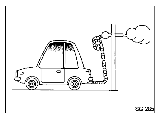 WARNING: To prevent ECM from storing the diagnostic trouble codes, do not carelessly disconnect the harness connectors which are related to the engine control system and TCM (Transmission Control Module) system. The connectors should be disconnected only when working according to the WORK FLOW of TROUBLE DIAGNOSIS in Computers and Control Systems and Transmission Control Systems sections.
