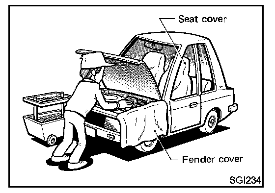Protect fenders upholstery and carpeting with appropriate covers.