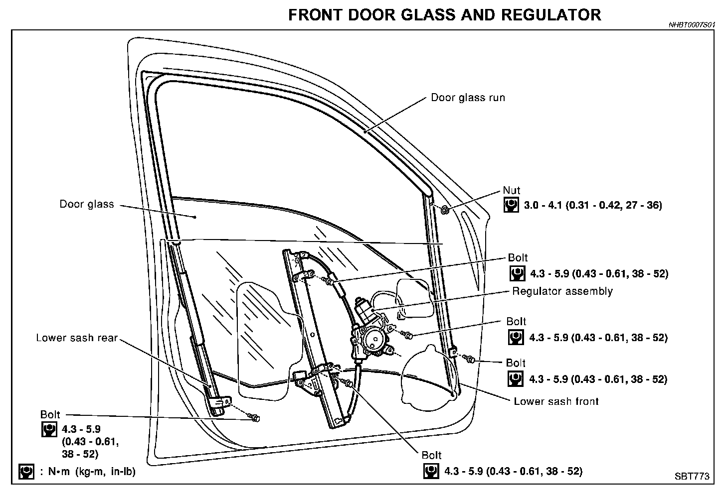 FRONT DOOR GLASS AND REGULATOR