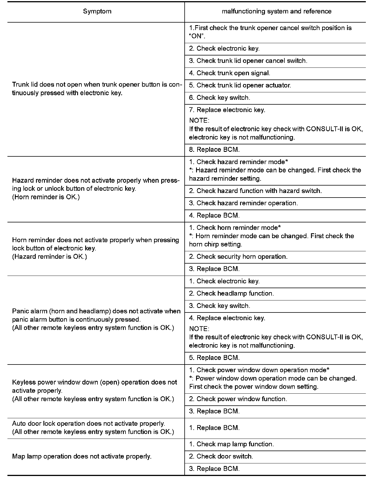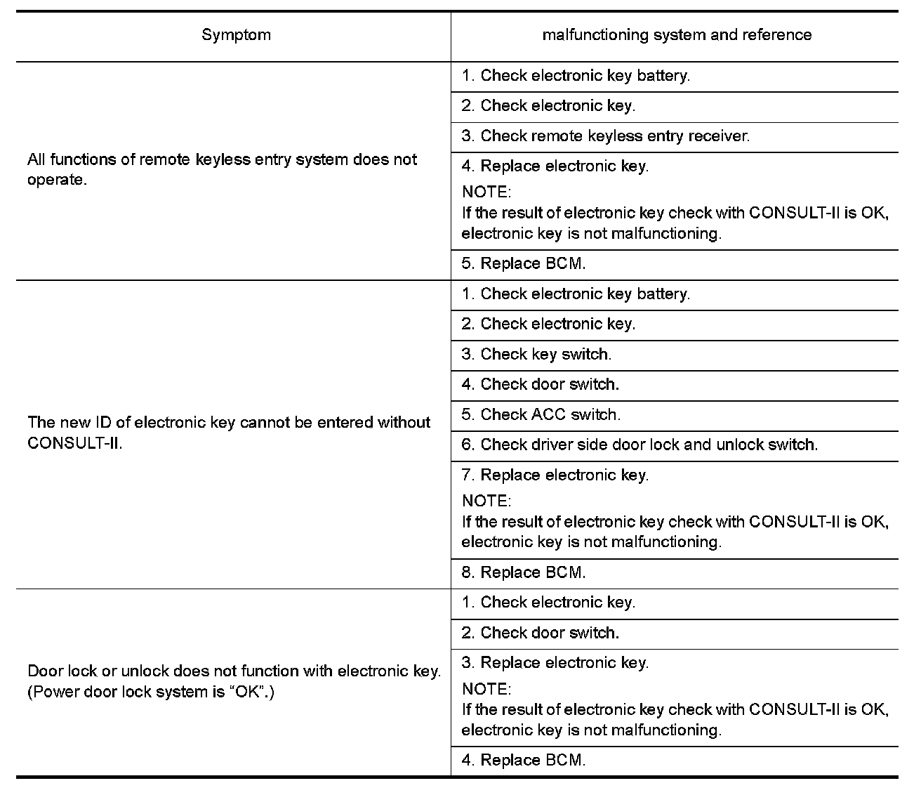 - Always check the "Work Flow" before troubleshooting. Refer to "Work Flow". Remote Keyless Entry System