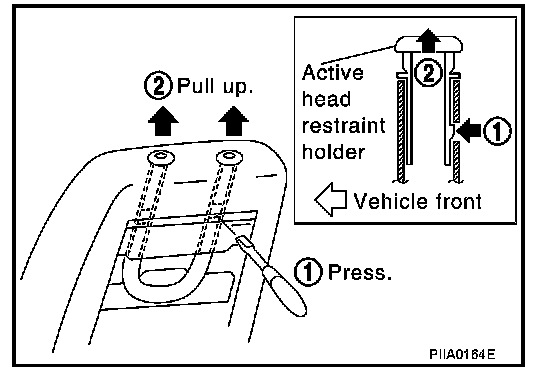3. From the back of the seatback, press the headrest holder tab of the stay pipe hole to disengage. Then pull the headrest holder up to remove.