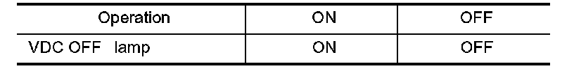 Touch "ON" and "OFF" on the screen. Make sure that VDC OFF lamp operates as shown in table.