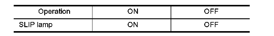 Touch "ON" and "OFF" on the screen. Make sure that SLIP lamp operates as shown in table.