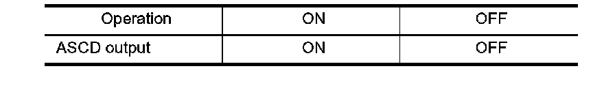 Touch "ON" and "OFF" on the screen. Make sure that ASCD output is as shown in table.