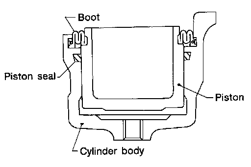 3. Apply brake fluid to the piston, and press the piston into the cylinder body by hand to assemble the piston-side lip on the piston boot properly into the groove on the piston.