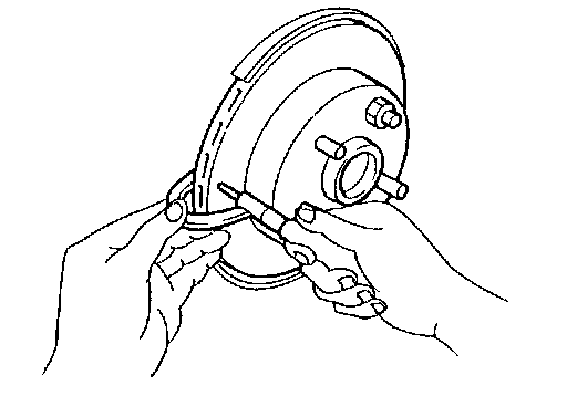 1. Using a micrometer, check the thickness of the disc rotor. If the thickness is outside the standard, replace the disc rotor.