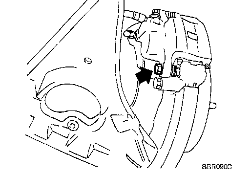 ^ It is not necessary to remove connecting bolt except for disassembly or replacement of caliper assembly. In this case, suspend cylinder body with wire so as not to stretch brake hose.