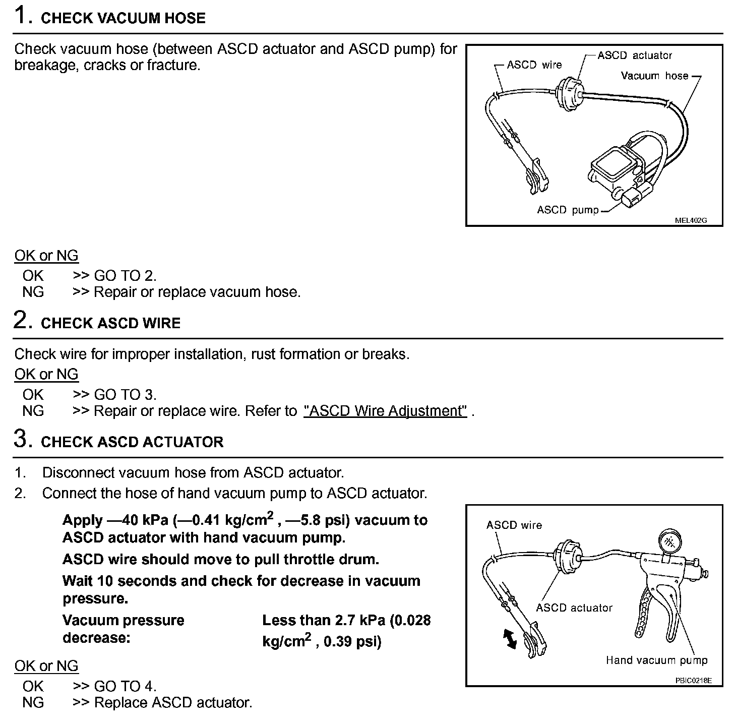 ASCD Actuator/Pump Check