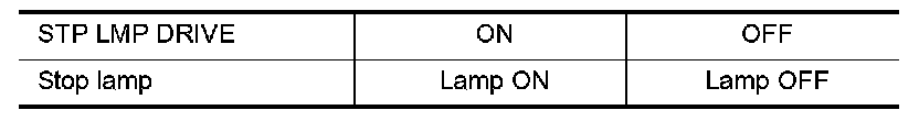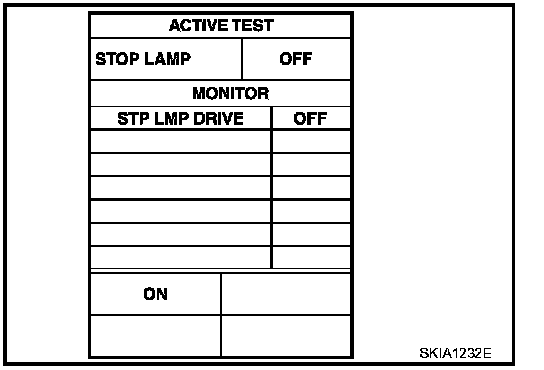 - Touch "ON" and "OFF" to check that stop lamp operates as in the chart.