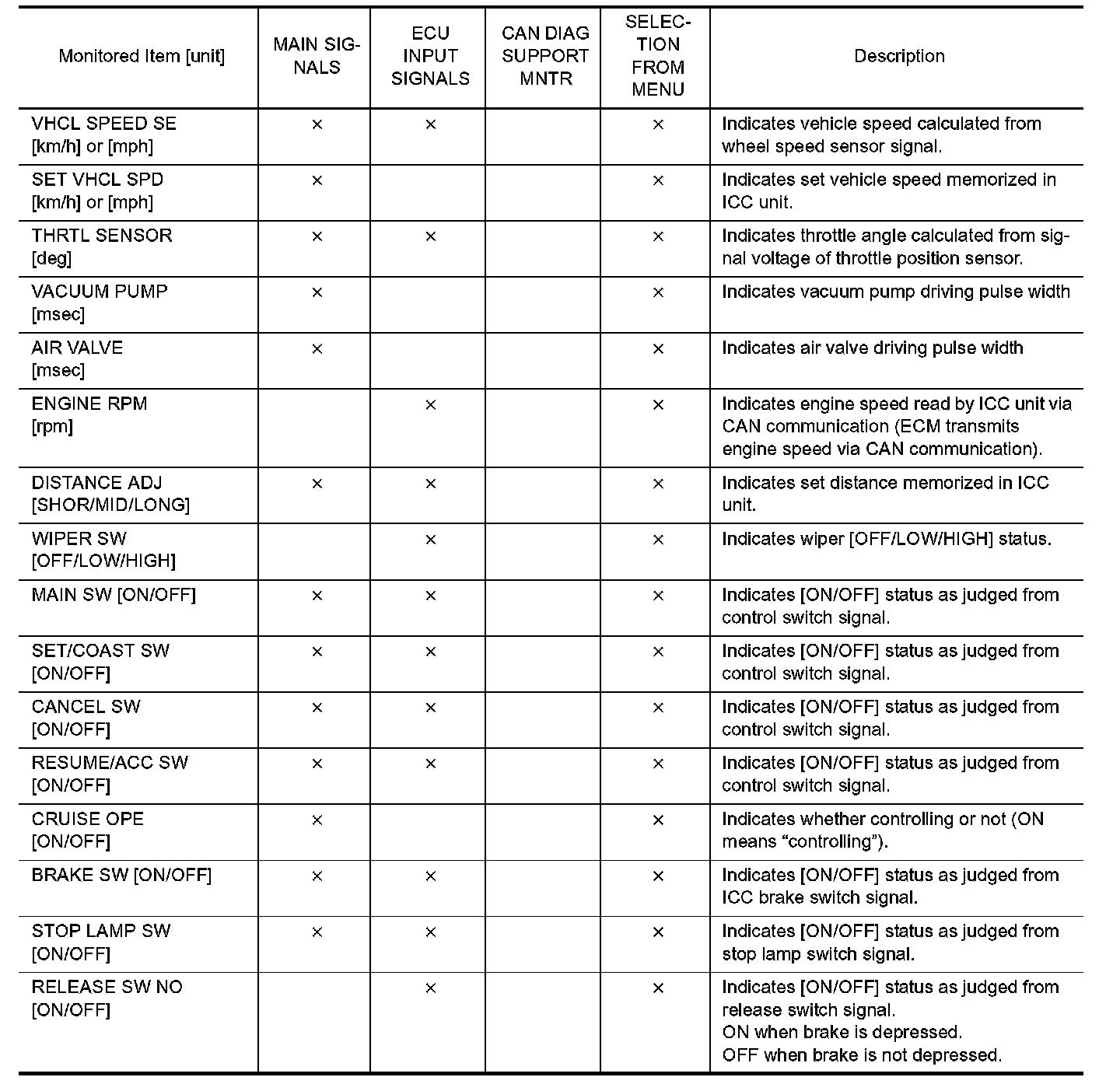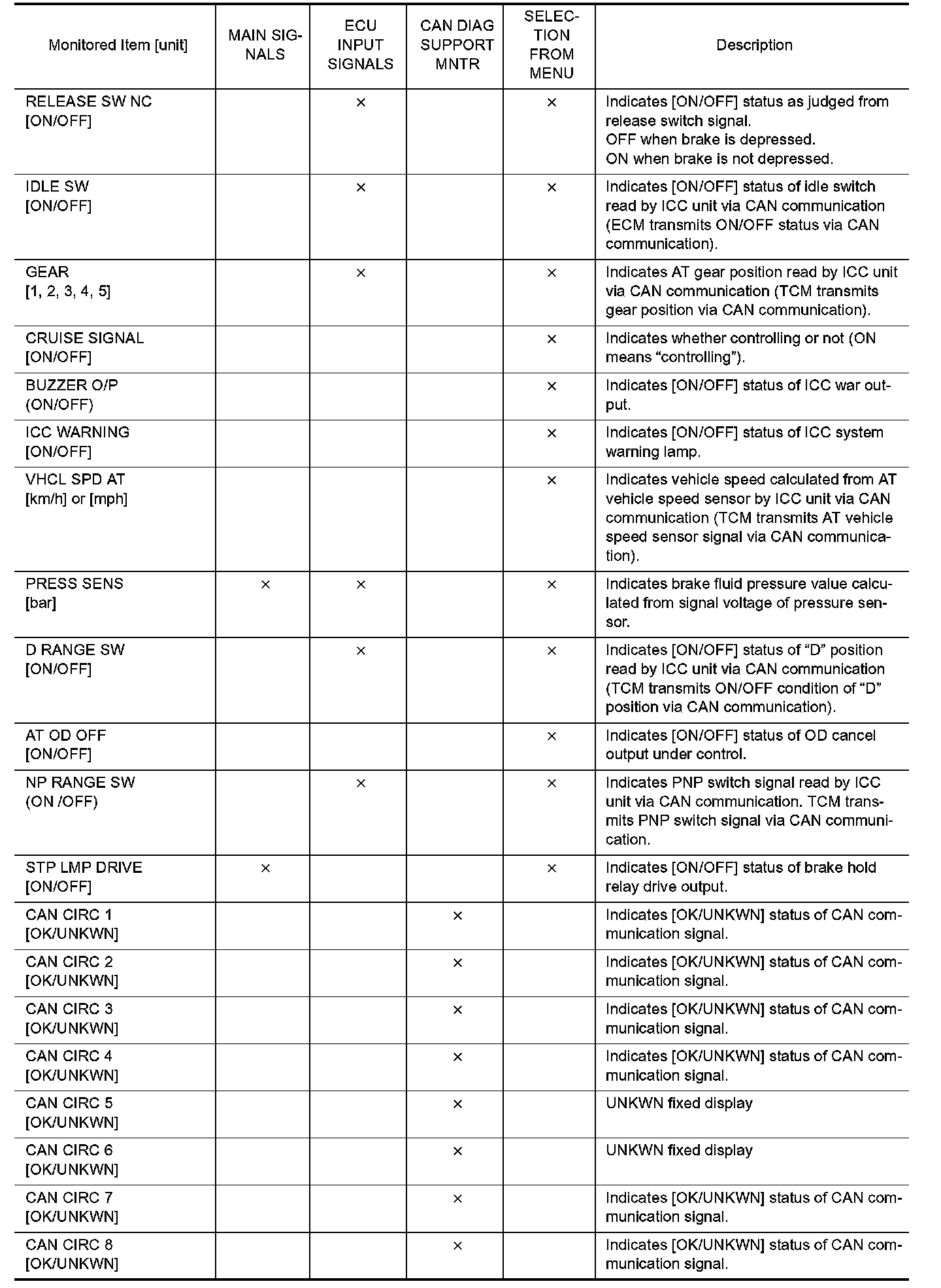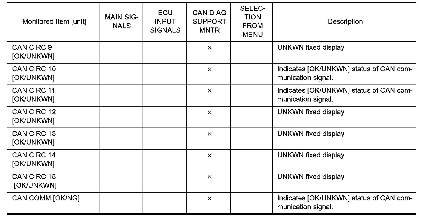 7. Touch any of "ECU INPUT SIGNALS", "MAIN SIGNALS", "CAN DIAG SUPPORT MNTR", and "SELECTION FROM MENU" on selection screen.