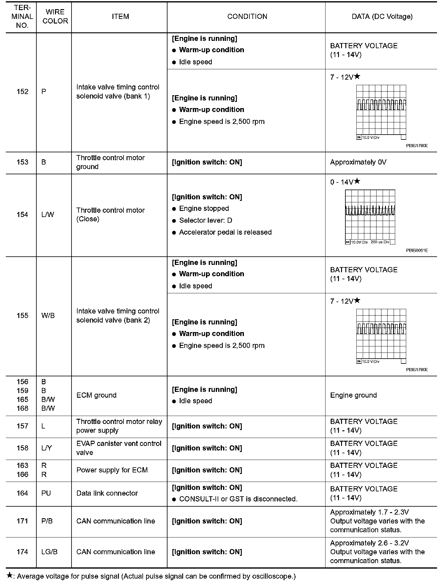 Pulse signal is measured by CONSULT-II.