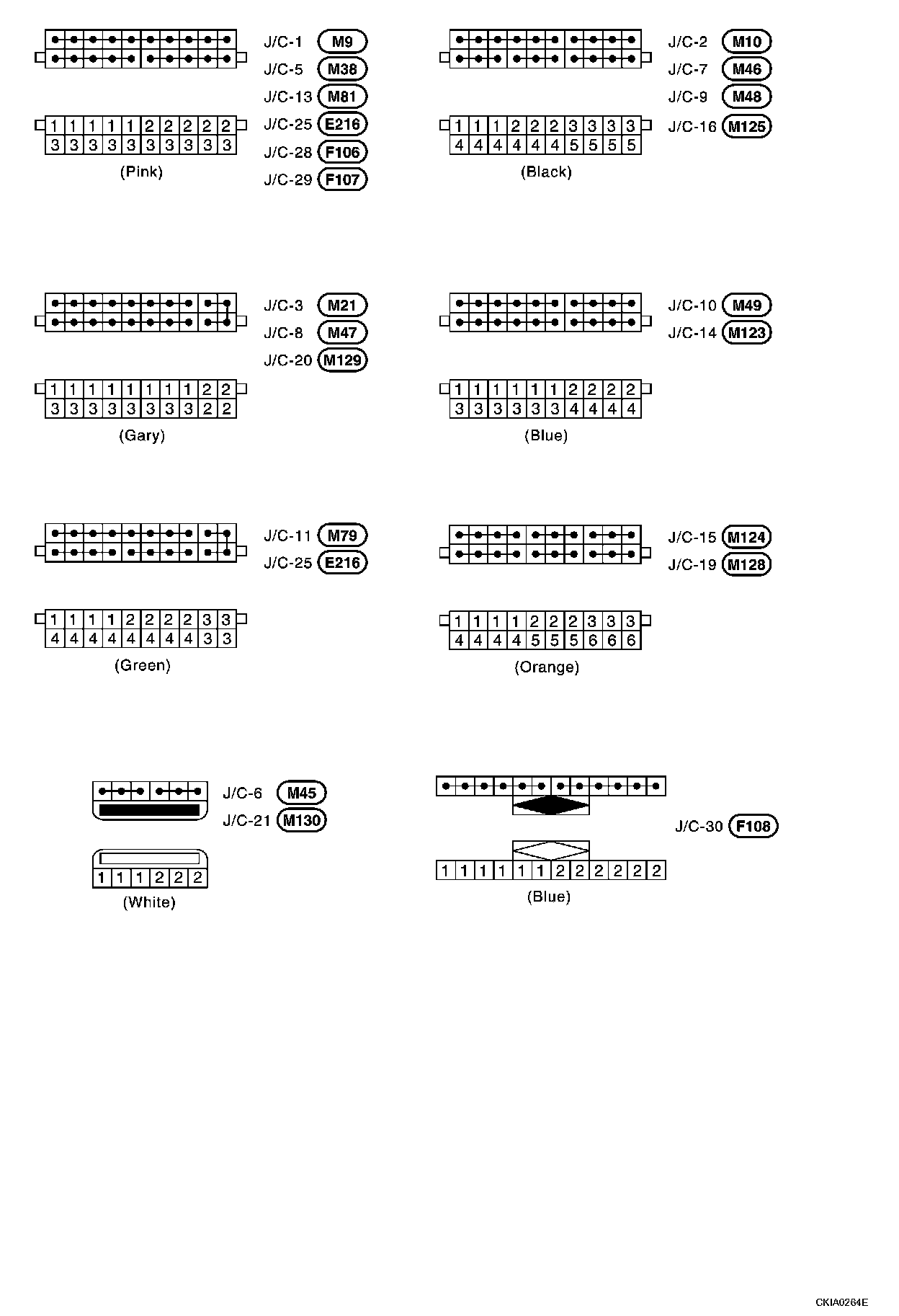 Joint Connector (J/C) Terminal Arrangement: