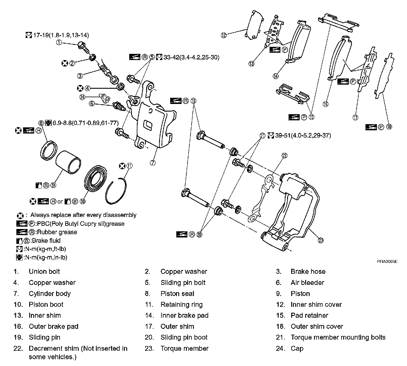 ^ Always replace the shims and shim covers as a set when replacing the brake pads.