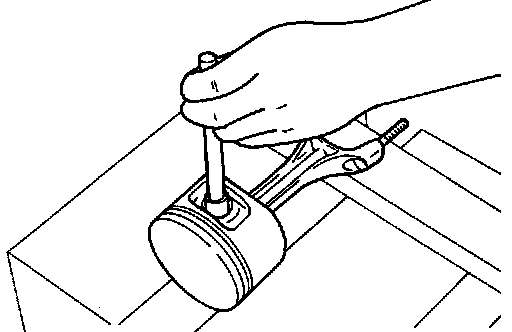 c. Push out piston pin with stick of outer diameter approximately 20 mm (0.8 inch).