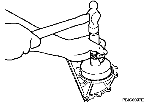 Tap until flattened with front edge of oil seal retainer. Do not damage or scratch outer circumference of oil seal.