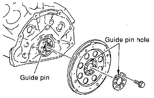 - Align guide pin of crankshaft rear end with pin holes of each parts to install.