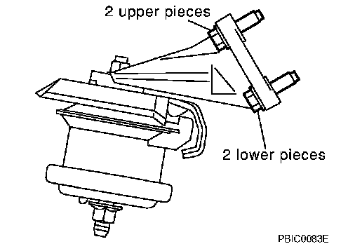 When installing front engine mount bracket to cylinder block, first tighten two bolts on upper side. Then, tighten two bolts on lower side. (The same applies to both right and left.)