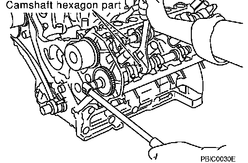 - Lock the hexagonal part of camshaft in the same way as for removal, and tighten fixing bolts.