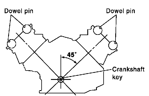 1. Check that the crankshaft key and dowel pin of each camshaft are facing in the direction indicated.