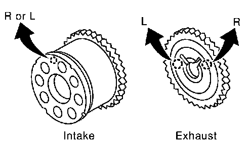 - Dowel pin groove of exhaust camshaft sprocket (camshaft sprocket is same part both banks)