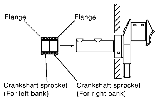 Install each crankshaft sprocket so that its flange side (the larger diameter side without teeth) faces in the direction shown in figure.