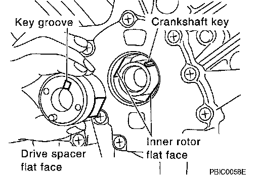 a. Insert oil pump drive spacer according to the directions of crankshaft key and the two flat surfaces of oil pump inner rotor.