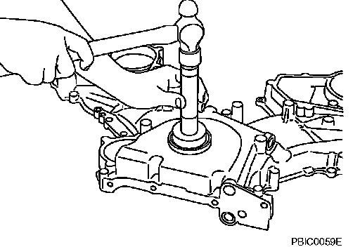 CAUTION: Be careful to avoid interference with the front end of oil pump drive spacer. Such interference may damage front oil seal.