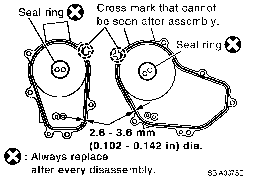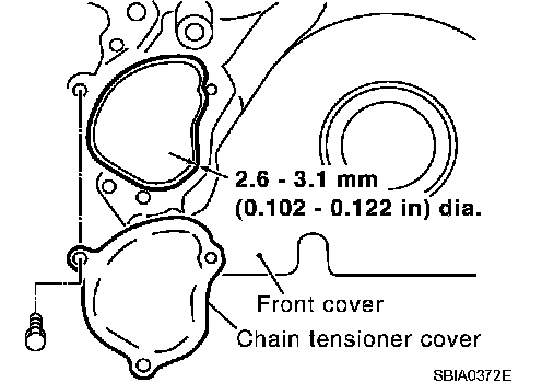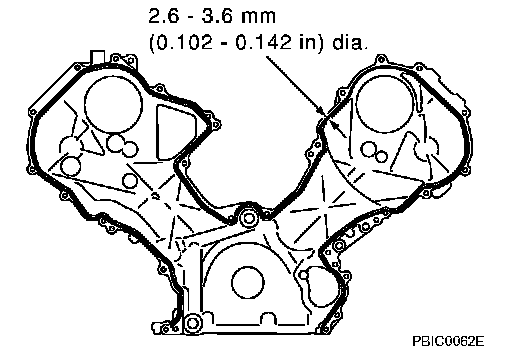 b. Apply liquid gasket as shown in the figure. Use Genuine RTV Silicone Sealant or equivalent. Refer to "RECOMMENDED CHEMICAL PRODUCTS AND SEALANTS".