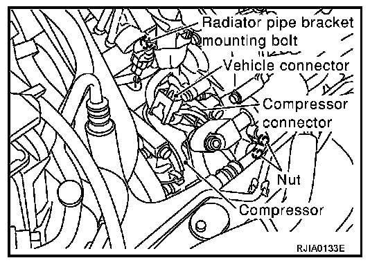6. Remove mounting nuts from both high-pressure flexible hose and low-pressure flexible hose.