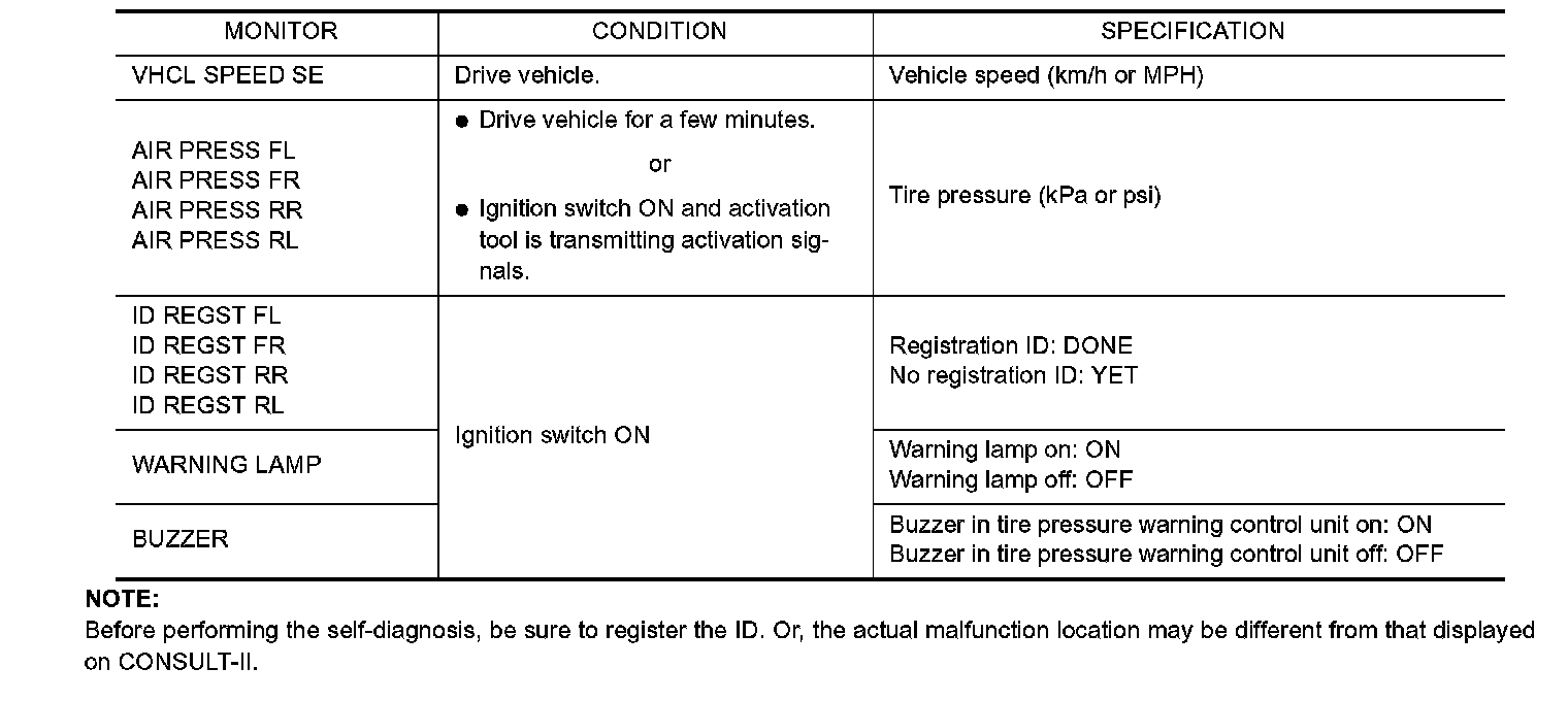 LOW TIRE PRESSURE WARNING SYSTEM - DATA MONITOR MODE: