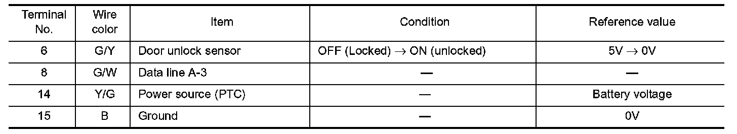 Terminals And Reference Value For Driver Door Control Unit (LCU):
