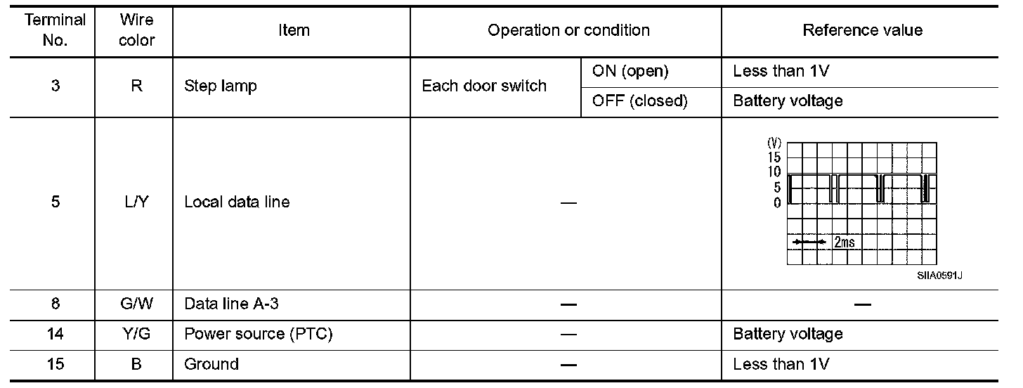 Terminals And Reference Value For Driver Door Control Unit (LCU 01):