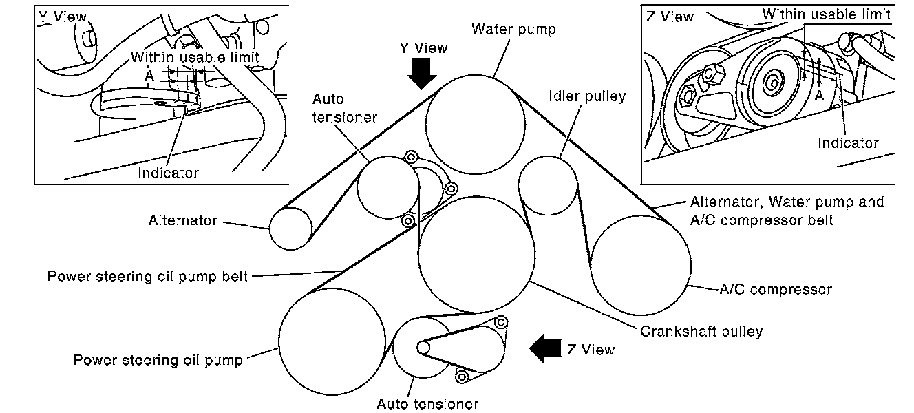 NOTE: Check the auto tensioner indication when the engine is cold.
