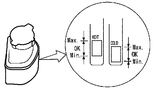 Because the fluid level differs within the HOT range and the COLD range, check it carefully.