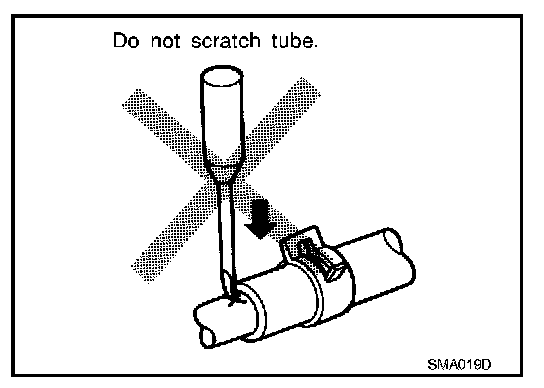 To prevent damage to rubber hose do not pry off rubber hose with tapered tool or screwdriver.