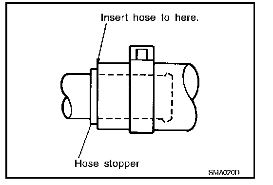 To reinstall the rubber hose securely make sure that hose insertion length and orientation is correct. (If tube is equipped with hose stopper insert rubber hose into tube until it butts up against hose stopper.)