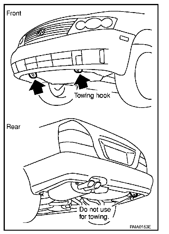 - Use the towing hook only to free a vehicle stuck in sand, snow, mud, etc. Never tow the vehicle for a long distance using only the towing hook.