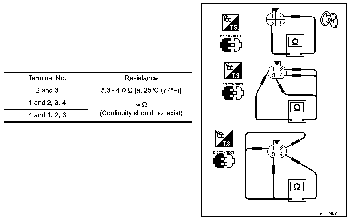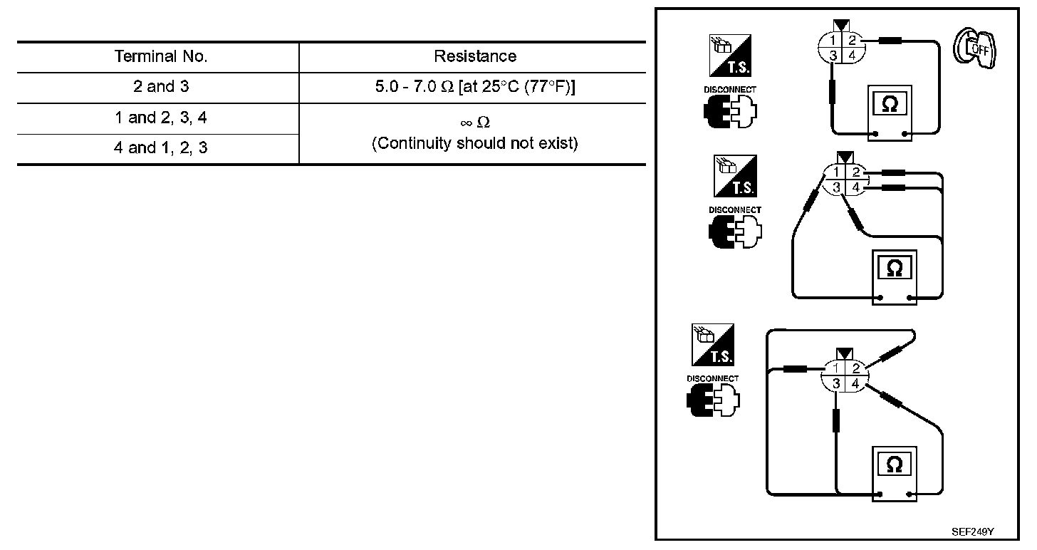 1. Check resistance between HO2S1 terminals as shown.