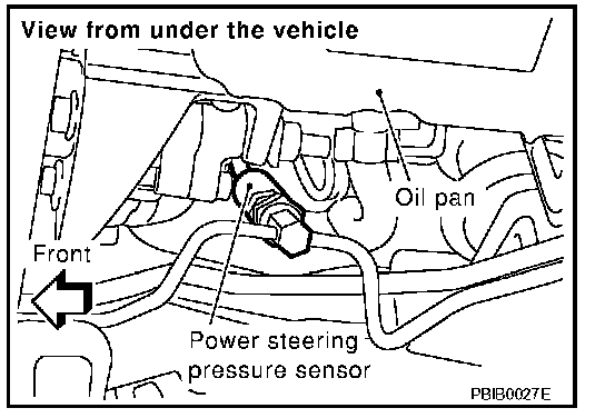 Power steering pressure (PSP) sensor is installed to the power steering high-pressure tube and detects a power steering load. This sensor is a potentiometer which transforms the power steering load into output voltage, and emits the voltage signal to the ECM. The ECM controls the electric throttle control actuator and adjusts the throttle valve opening angle to increase the engine speed and adjusts the idle speed for the increased load.