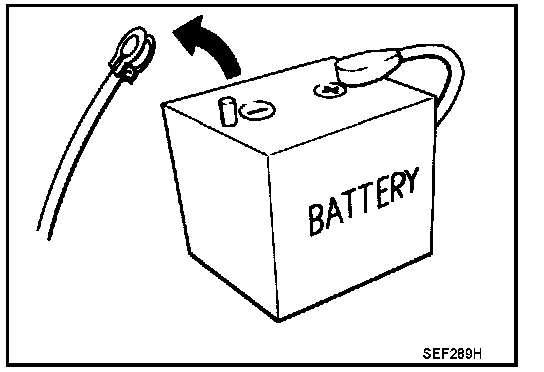 - Before removing parts, turn ignition switch OFF and then disconnect battery ground cable.