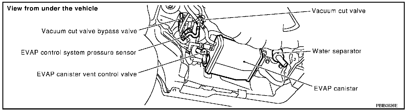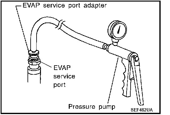 Positive pressure is delivered to the EVAP system through the EVAP service port. If fuel vapor leakage in the EVAP system occurs, use a leak detector to locate the leak.