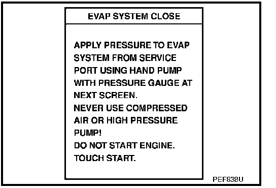- Do not exceed 4.12 kPa (0.042 kg/sq.cm, 0.6 psi) of pressure in EVAP system.