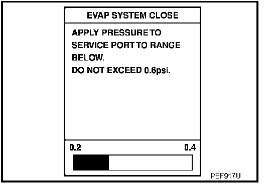 6. Apply positive pressure to the EVAP system until the pressure indicator reaches the middle of the bar graph.